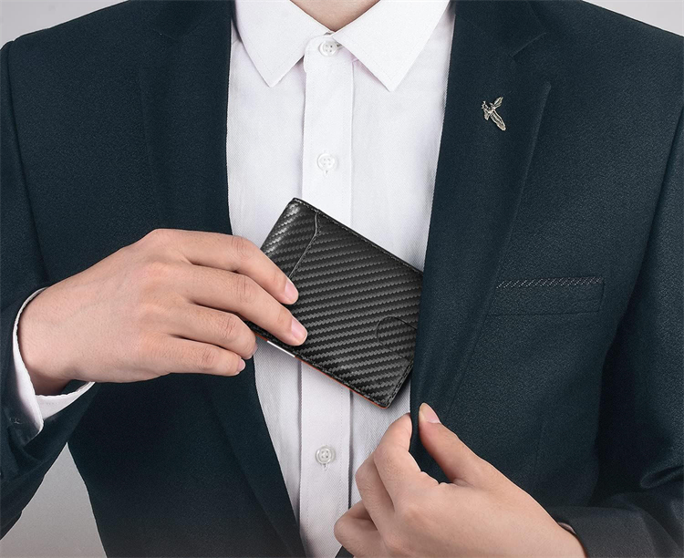 •This slim wallet for men equipped with RFID blocking technology, which specifically blocks 13.56 MHz or higher RFID signals to protect the valuable information and privacy